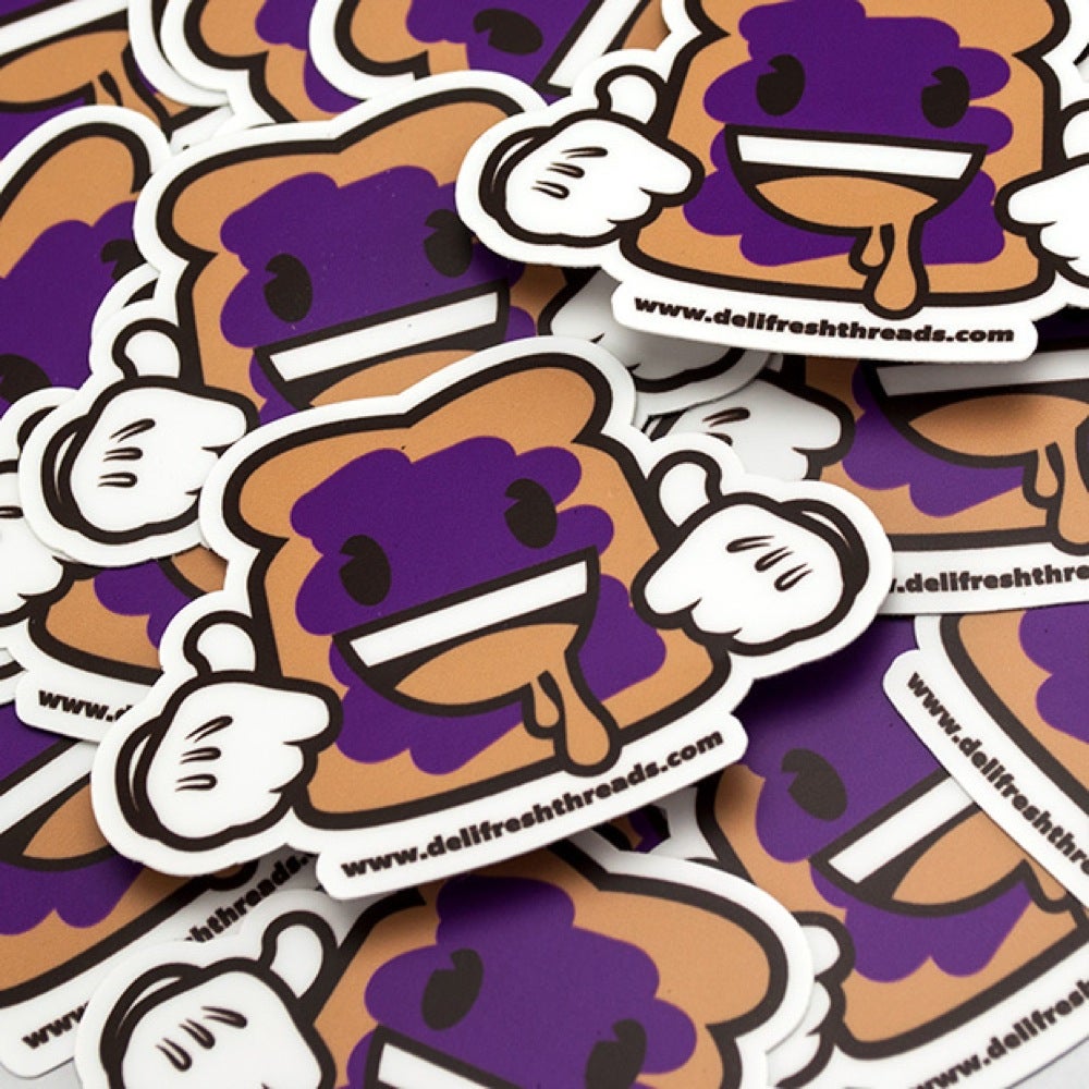 Peanut Butter & Jelly time! Peanut Butter & Jelly on Biggie Bread. This one Diecut Sticker is made from a durable vinyl and is weather resistant so it is protected from scratching, rain and sunlight.